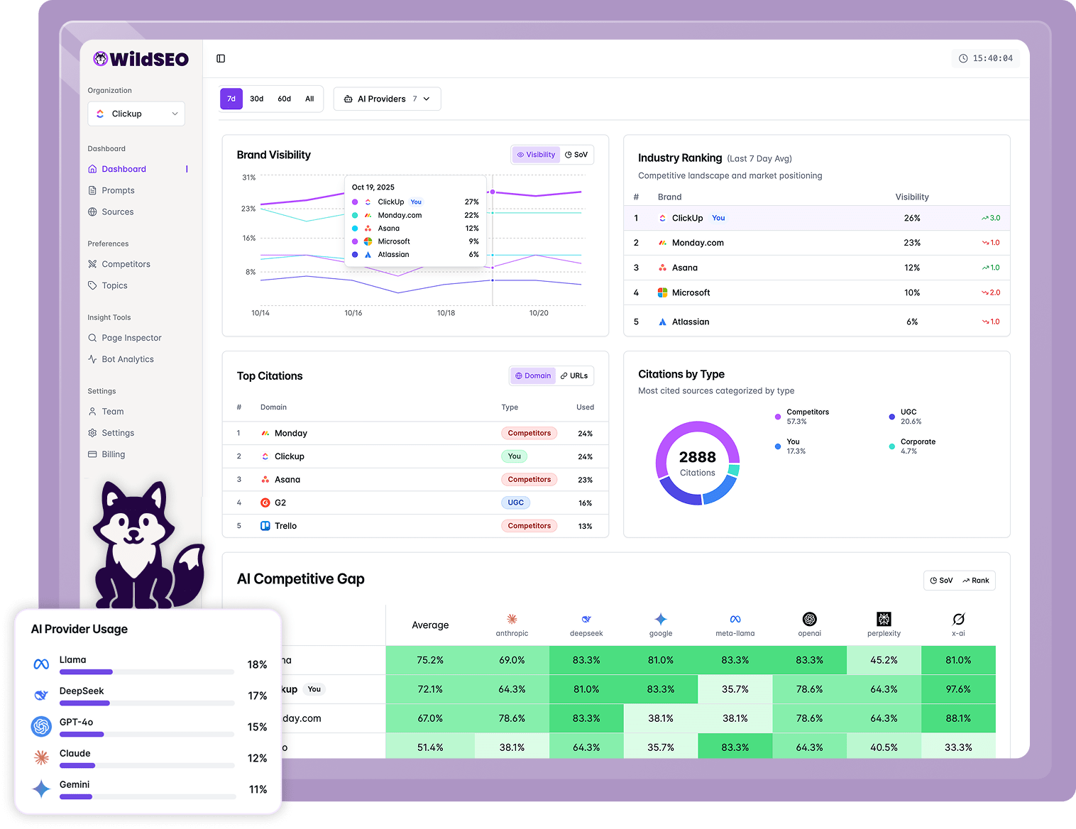 WildSEO is the first Answer Engine Optimization (AEO) platform that tracks your brand's visibility